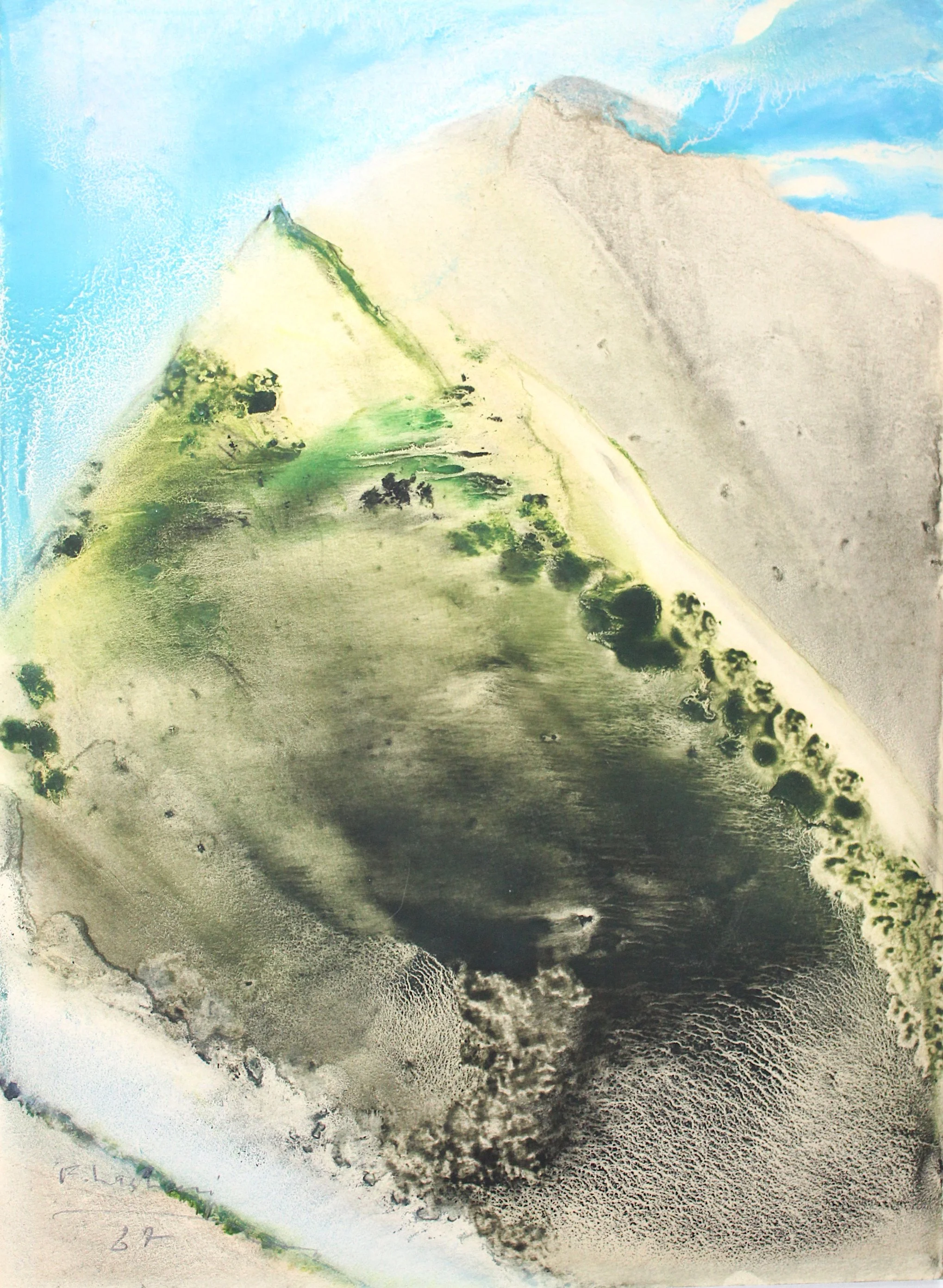 Across Lashai’s work, nature serves as a portal to contemplate the psychic world and the unknown, both personally and collectively, often registering the effects of History including war, revolution, and political uncertainty in Iran and across the globe. As Lashai described herself, “The essential being of nature: freshness, beauty, the endless life and death, this wondrous cycle of the breathing earth and time (zāmin vā zaman), this tumult and at times stillness of nature motivates me to work.” Nature, for Lashai, is a starting point, it is the poetry that surrounds us, and the catalyzing force behind her work as an artist. The exhibition includes a series of abstract paintings of the Darbandsar Mountains in northern Tehran, Iran, reflecting the artist’s engagement with aesthetic abstraction, formal technique, and the relationship between images and poetry, a landscape beloved to the artist and her family. Described in detail in her autobiographical novel Shâl Bâmo (The Jackal Came), the mountains and the Caspian Sea were central to Lashai's life, influencing her deeply. Painted during the turbulent decade following the Iranian Revolution and the Iran-Iraq war, her works convey a sense of upheaval and resilience. The mountains in her paintings are textured and layered with colors, symbolizing the tumultuous emotions of fear and bloodshed. These pieces serve as witnesses to history, reflecting the complexities of nature and human experience.